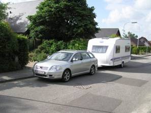 forsynede campingvognen med et destinationsskilt og kørte over Korskro til