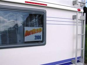 anden spøgefugl havde stillet et af festflagene på taget af campingvognen,