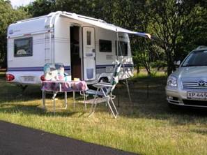 kørte vi ind på campingpladsen, der ligger lige ved vejen. Den er