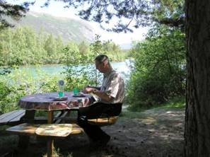 fandt uden problemer en dejlig rasteplads helt ned til elven Otta, hvor vi